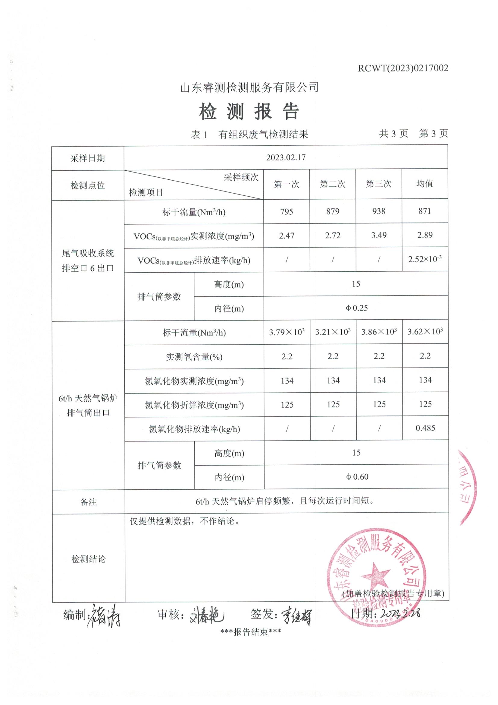 2023年2月份自行檢測報告