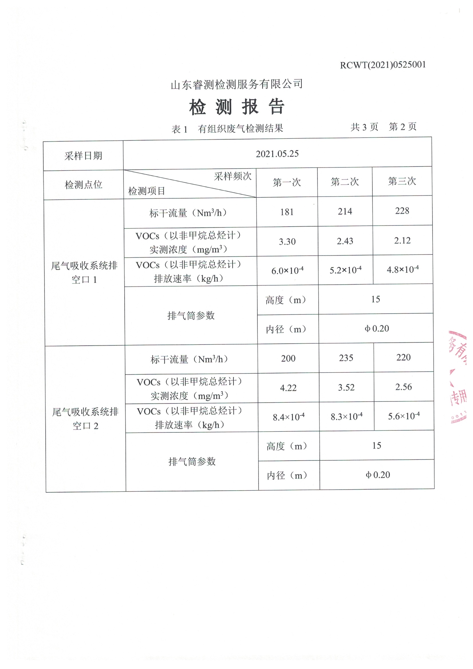 2021年4月份及季度自行檢測(cè)報(bào)告