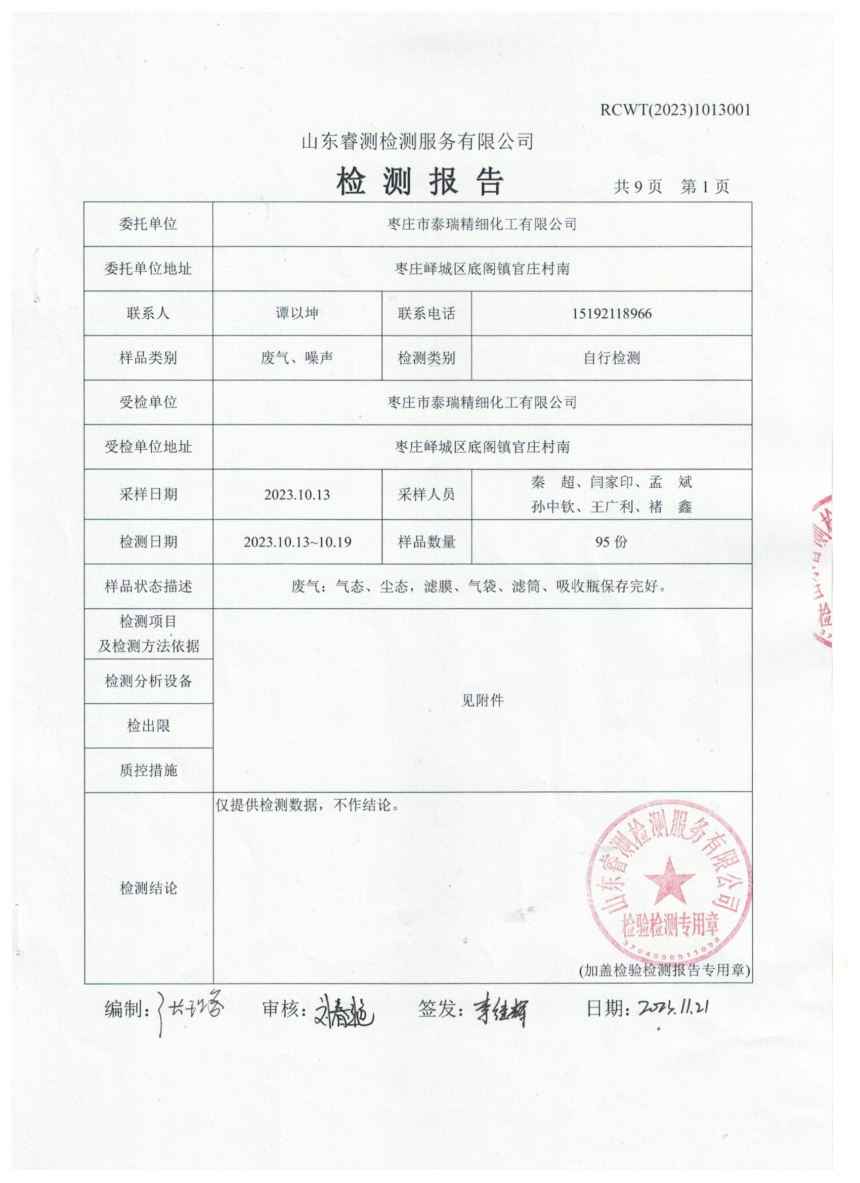 2023年第4季度(10月份)檢測(cè)報(bào)告